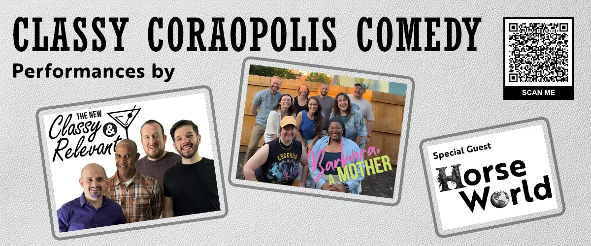 8:00 pm - 9:30 pm Classy Coraopolis Comedy February 7 @ 8:00 pm - 9:30 pm Classy Coraopolis Comedy Babara, A Mother will be Joining Classy and Relevant for our next improv show at Paragon Theare in Coraopolis. February 7, 10pm - $10 admission.